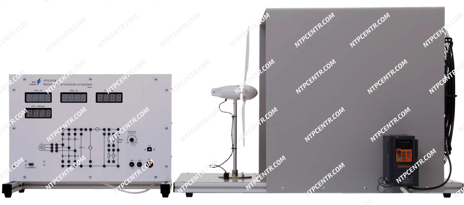 The air flow from the fan, passing through the duct, goes to the wind turbine impeller and sets it in rotation. The impeller can be removed without much difficulties, the delivery set includes at least 3 types of blades. A set of blades of each type includes at least 6 blades. The impeller blades have an adjustable angle of inclination. The maximum wind speed at the blades is 10 m/s. The max. power of the turbine is 0.2 W. Electrical circuits connection at the panel is carried out by unified jumpers.