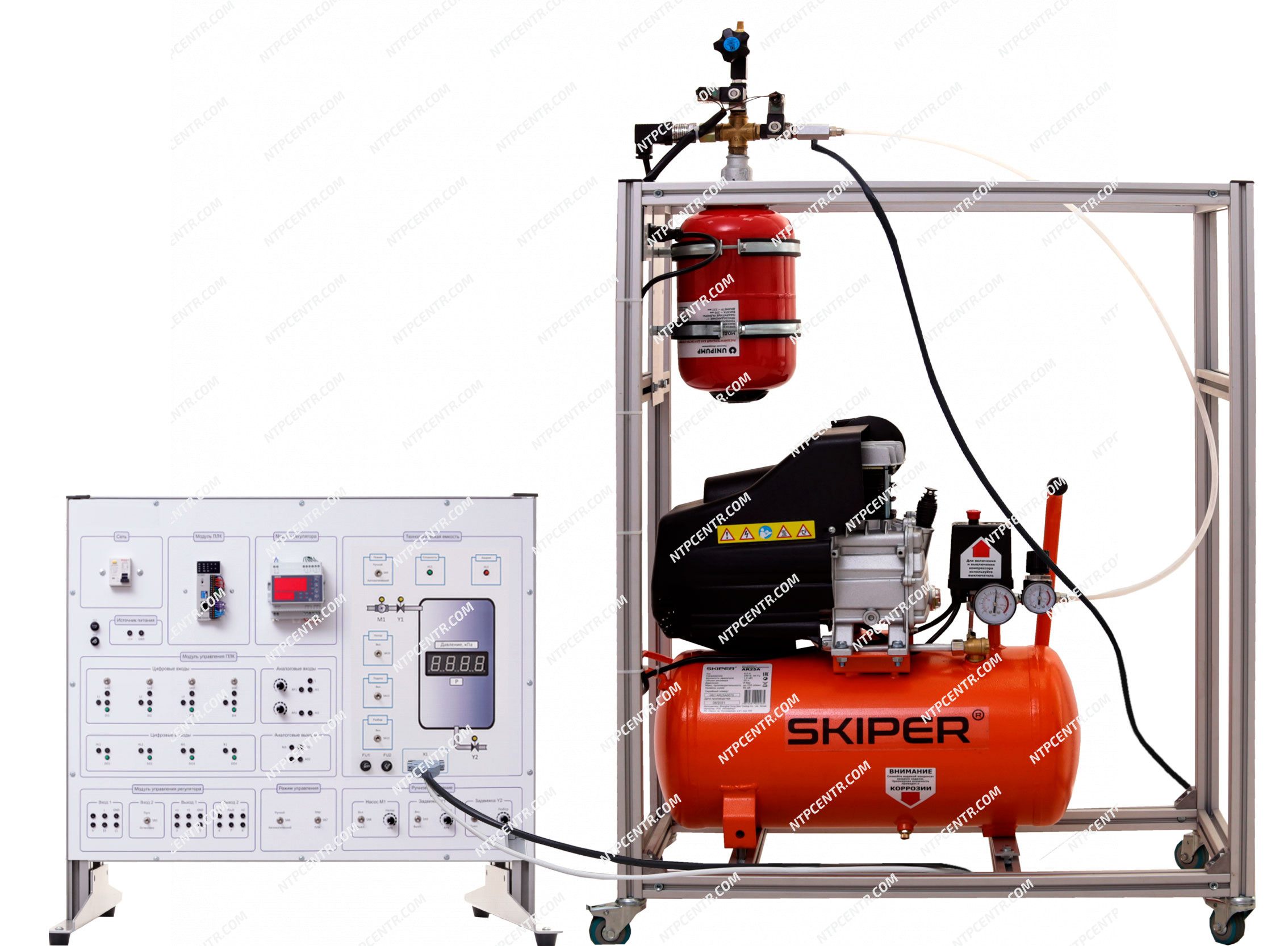 The training laboratory stand is designed for studying the Proportional-Integral-Derivative (PID) level regulator implemented on a PLC and a measuring-regulator device, as well as its various applications in industry for constructing automated control systems. It covers the technical specifications and capabilities of programmable logic controllers (PLCs), familiarization with programming environments and development languages (LAD and FBD), as well as practical application of programming methods through examples of automated objects.