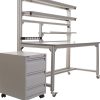 The stand is a table made with aluminum profiles, with connecting elements made from steel or aluminum alloy. The table is equipped with: