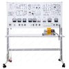 The front panel features electrical diagrams of the investigated objects. All circuits drawn on the panel are divided into groups in accordance with works subjects. Commutation sockets, pointer switchboard instruments, switchgear, controllers for adjusting parameters are installed on the panel.