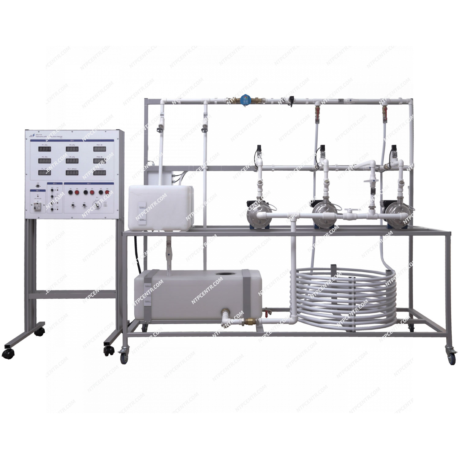 The training laboratory stand is designed for experimental study of the operating modes of a headless-type pump station and for coordinating pump operation modes. It allows investigation of parameters and hydraulic characteristics of industrial pump equipment used for water supply in residential buildings.