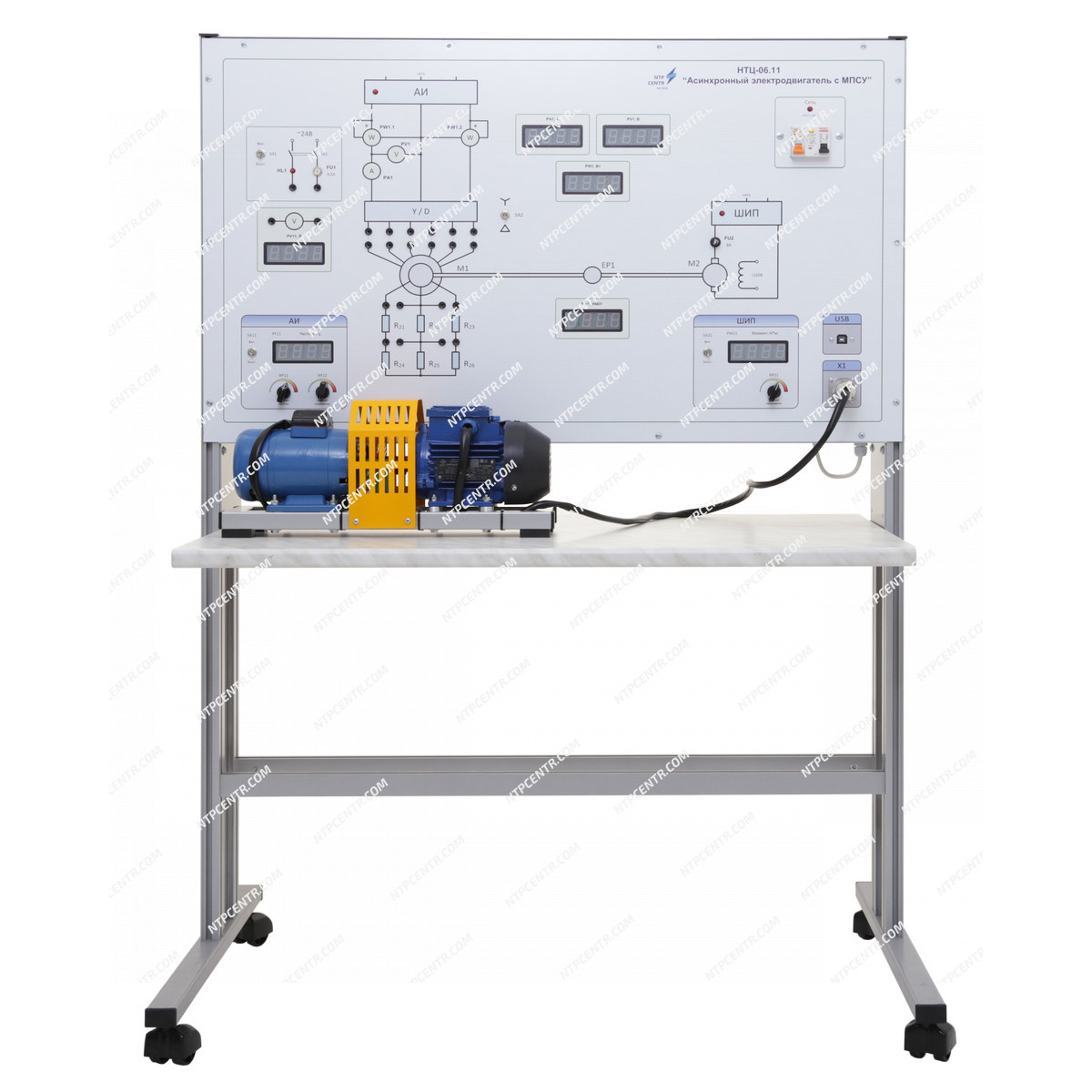 Стенд комплектуется электромашинным агрегатом на основе электродвигателей мощностью 100 Вт или 0,55 кВт.